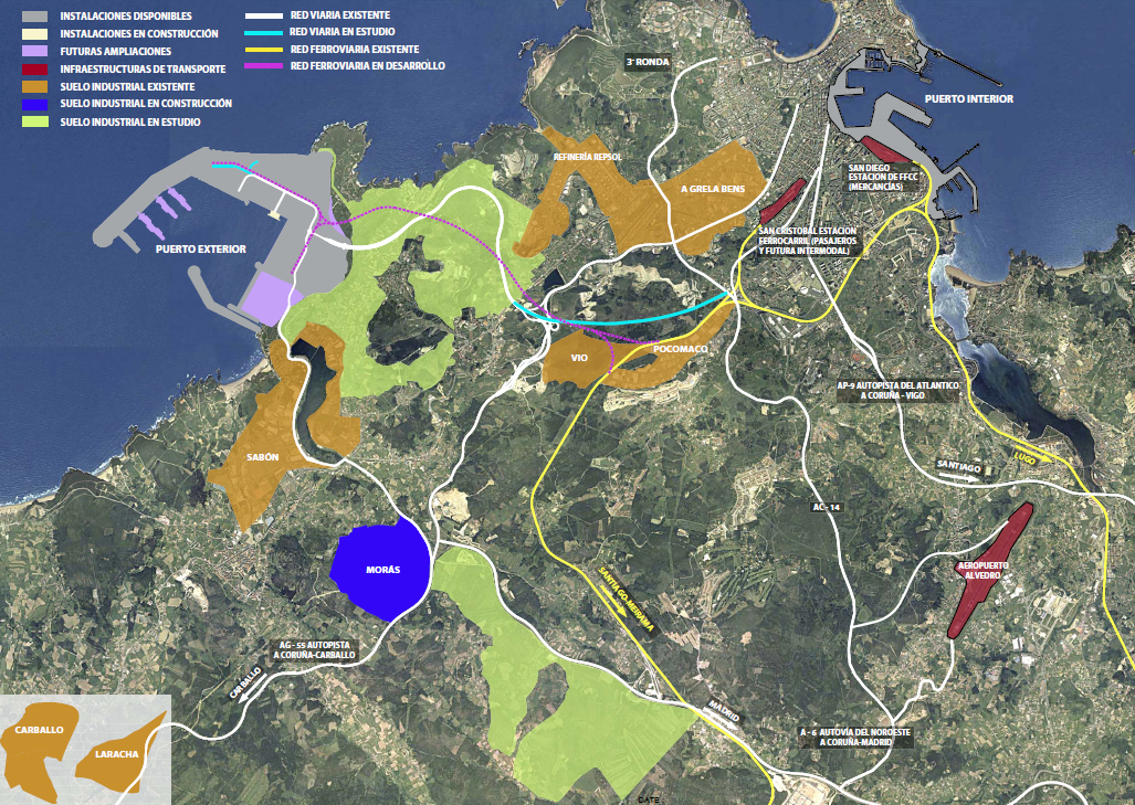 Mapa de accesos terrestres al Puerto de A CoruñaEsquema General de los Tráficos Ferroviarios del Puerto de A Coruña